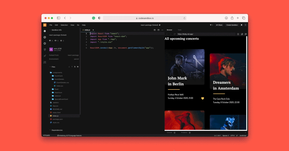 CodeSandbox is a platform that allows you to edit code online, speeding up web development. This platform is popular for creating full-stack web apps, static sites, or components on any device with a web browser.